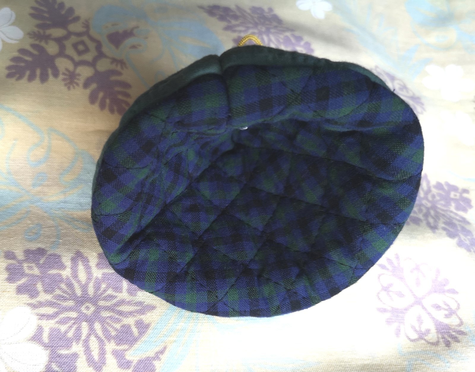 製作・デザイン製作Chie三角の鍋つかみです。飾りとしてもかわいいと思います。手染めosanaiさんの生地を使っています。<br/>